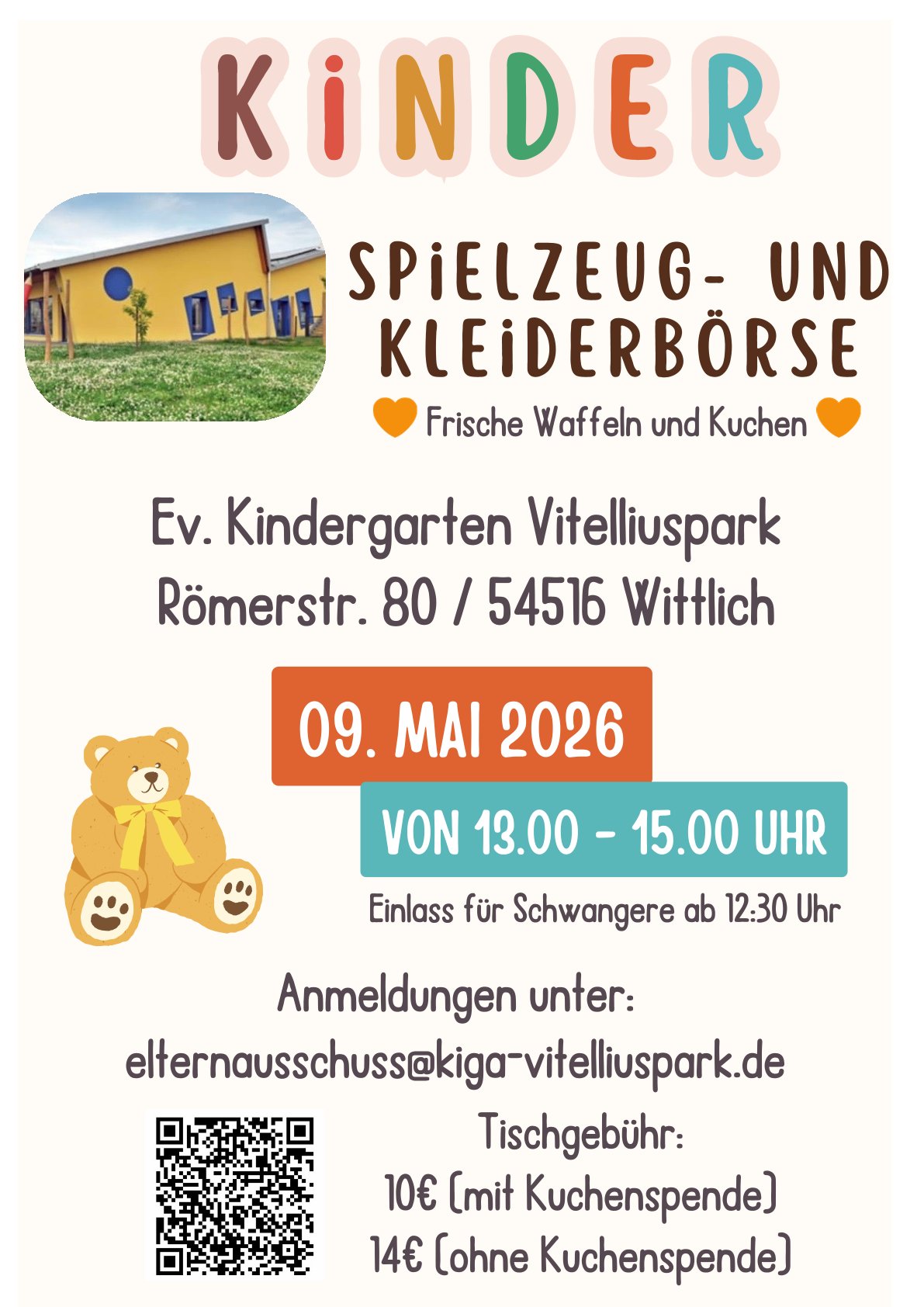Der Elternausschuss des Kindergartens veranstaltet am 9. Mai 2026 eine Spielzeug- und Kleiderbörse.